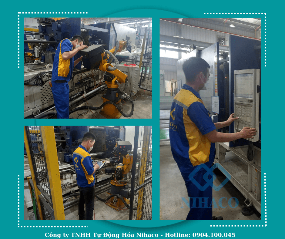 Đội ngũ nhân viên kỹ thuật Nihaco lập trình PLC cho cánh tay Robot